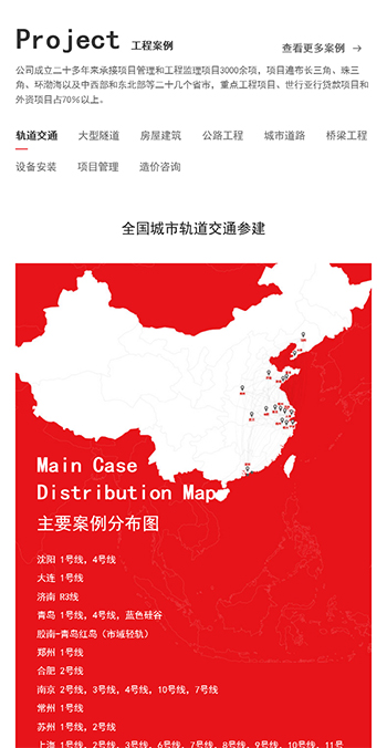在轨道交通、大型隧道、市政道路、设备安装、高速公路、环境治理及大型公共建筑领域有着丰富的工程管理经验和业绩。服务的工程项目遍布全国,连年获得国家优质工程奖、詹天佑土木工程奖、鲁班奖、全国市政金杯奖、中国人居环境范例奖等多项奖项。